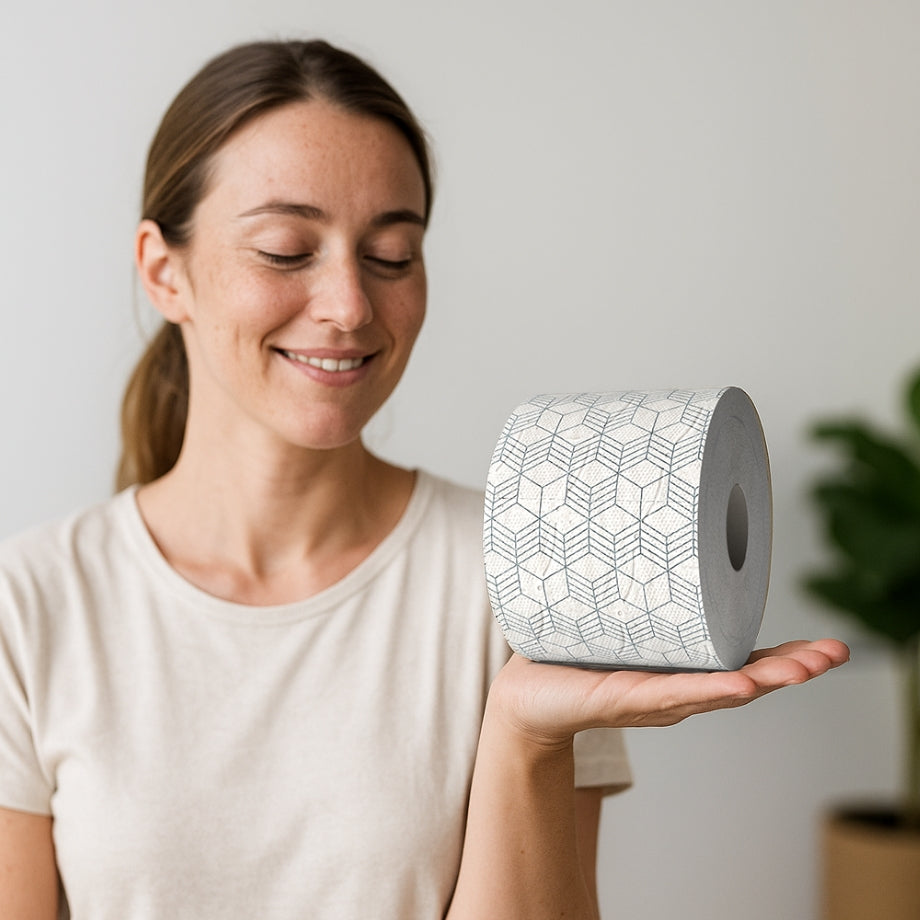 Wenn schon stilvoll, dann doch auch bis ins letzte Detail: Unser Design Toilettenpapier Nicecube hat klare geografische Elemente aufgedruckt. Man mag Bauhaus oder Escher darin entdecken oder sich einfach nur an der Optik erfreuen. Besonders ist es in jedem Fall.